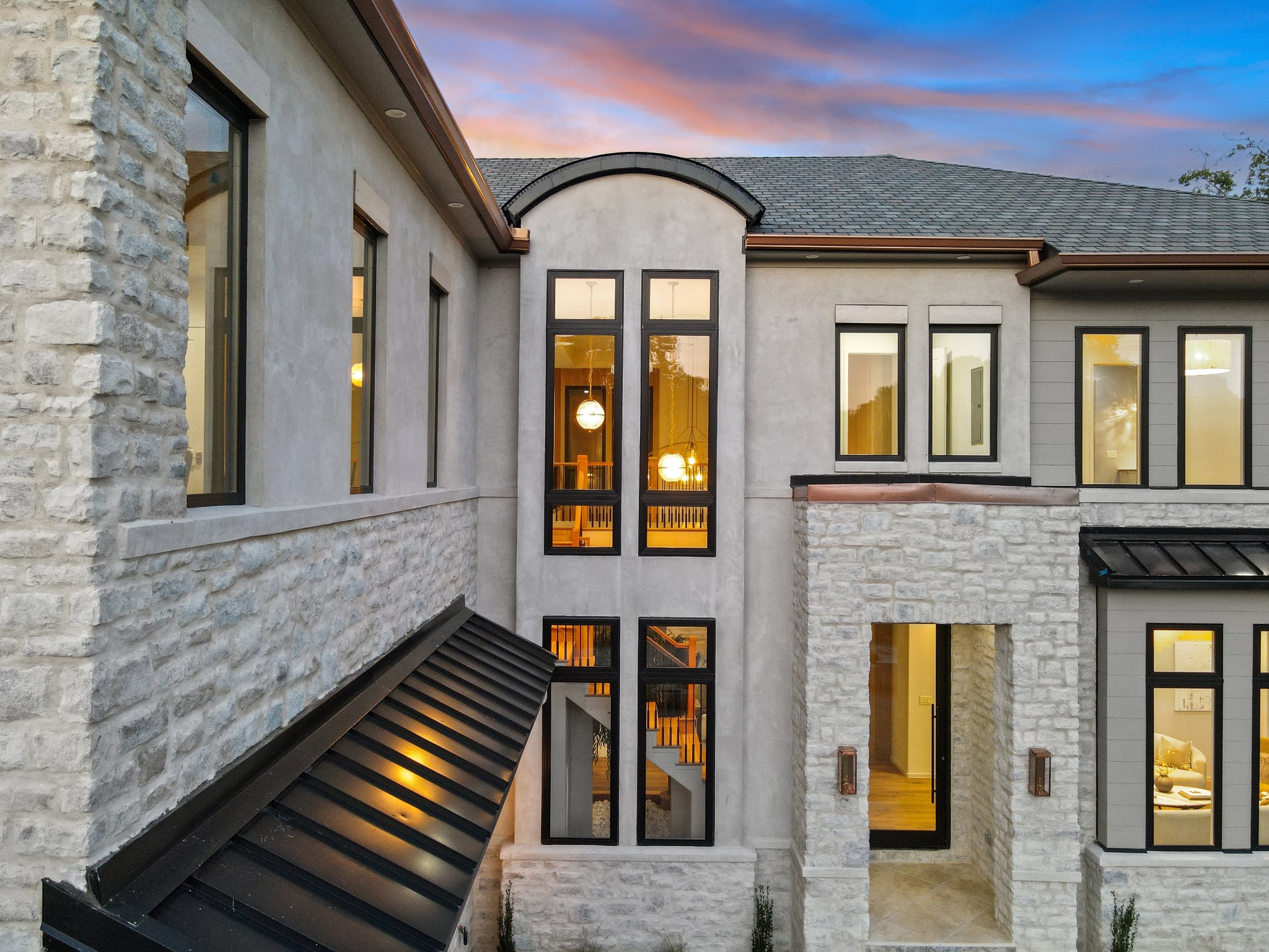 Modern estate retreat in Southwest Williamson County, designed to blend contemporary style with the natural beauty of its surroundings. This unique residence is composed of seven distinct wings, each connected by striking, gallery style hallways. Expansive walls of glass (55 windows in total) frame sweeping views and flood the interiors with natural light, creating a seamless connection between indoors and out. Set on 6.44 level acres in a private, forested clearing, the home offers both tranquility and convenience, just minutes from the Natchez Trace Parkway, Leiper’s Fork, and nearby amenities in Fairview. The thoughtfully planned layout allows for solitude in each wing while still offering a flowing, open design. Outdoors, a newly added saltwater pool (heated) and fenced entertainment area create a resort-like setting for gatherings, relaxation, and enjoying the Tennessee landscape at its best.
