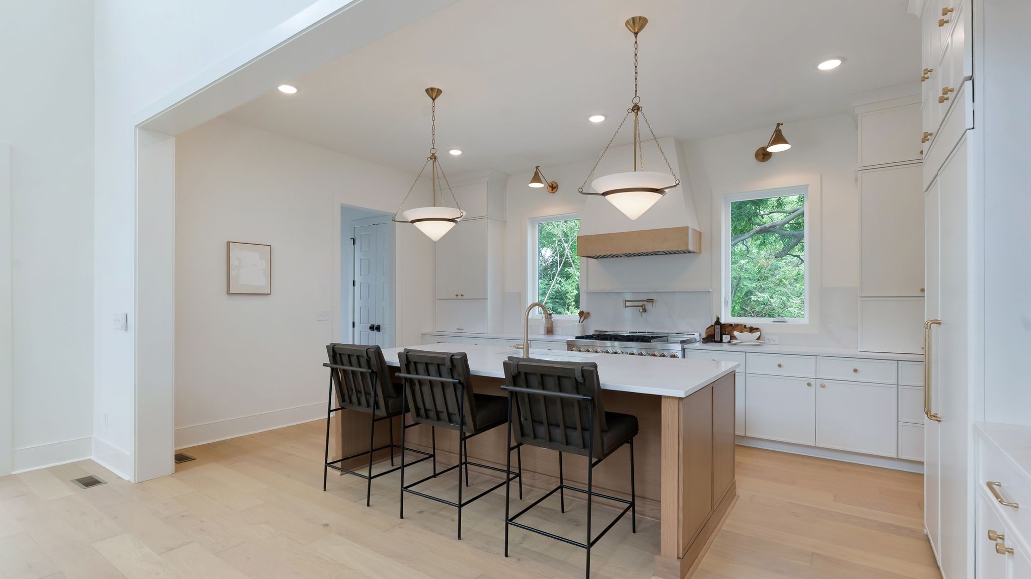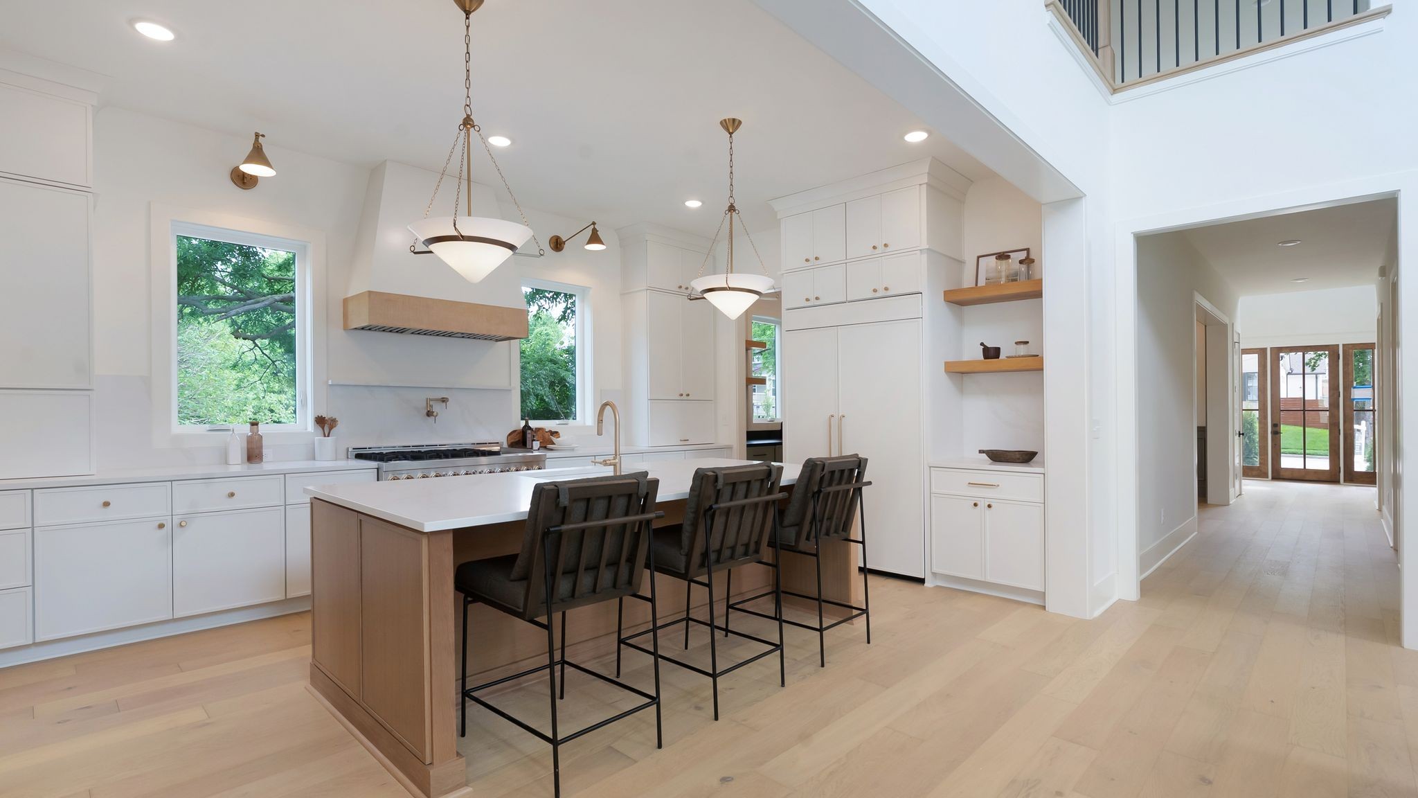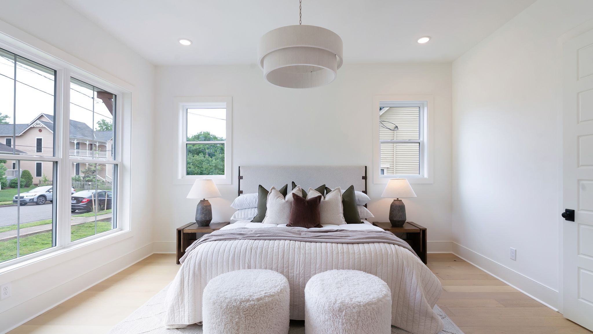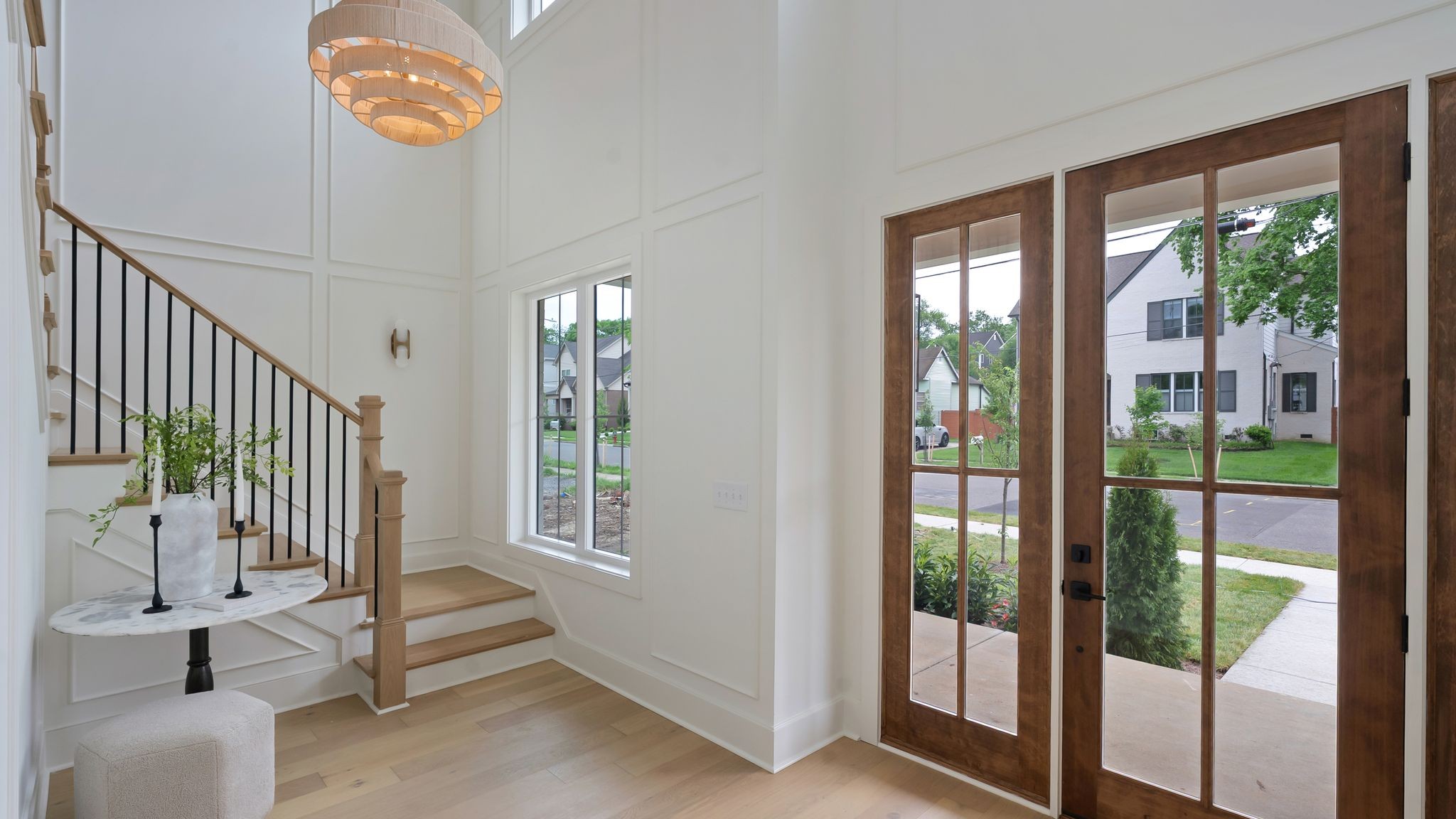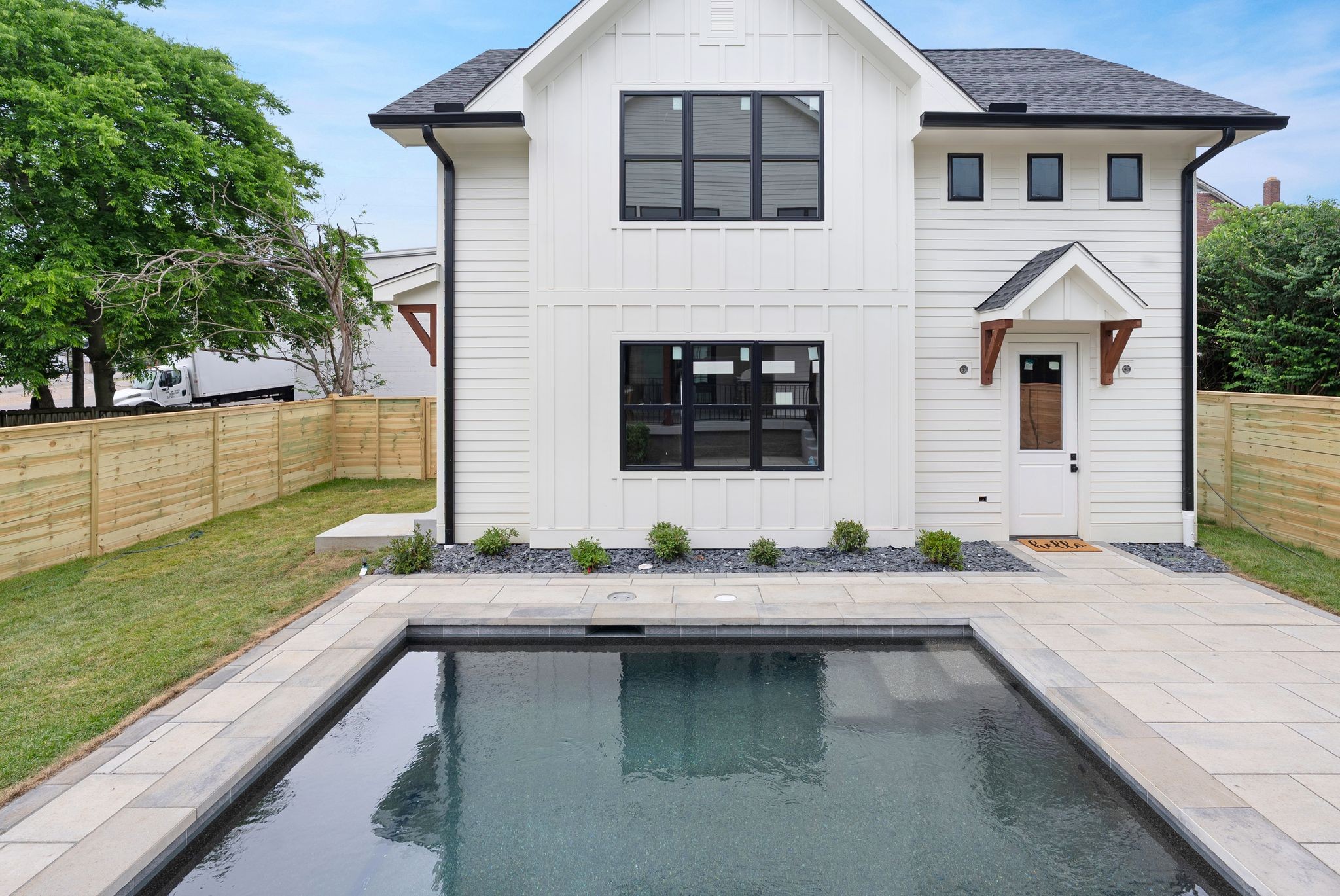 Experience elevated living in this stunning new construction by Jackson Builders, thoughtfully designed by Amber Peirce Design in the heart of Sylvan Heights. Every detail has been meticulously curated, blending luxury and functionality throughout. Natural light fills the open floor plan, anchored by a striking staircase leading to the second level. The chef’s kitchen impresses with high-end finishes, a wet bar complete with beverage fridge and ice maker, and flows seamlessly into a versatile home office or sitting room. The living room features soaring vaulted ceilings, creating an airy, inviting space. Step outside to the covered outdoor living area, outfitted with a gas grill, wet bar, and fireplace—ideal for entertaining year-round. The main-level primary suite offers a serene retreat with high ceilings, a spa-inspired bath, and a walk-in closet with optional washer/dryer hookup. Upstairs, enjoy a spacious rec room and three additional bedrooms, each with ensuite baths. Outside, relax by the private pool or utilize the detached two-car garage with epoxy flooring and 700 sq ft of unfinished space above—ready to customize into a studio, gym, or guest suite. Perfectly situated minutes from The Nations, West End, and downtown Nashville’s top dining and shopping. Includes a one-year builder warranty.