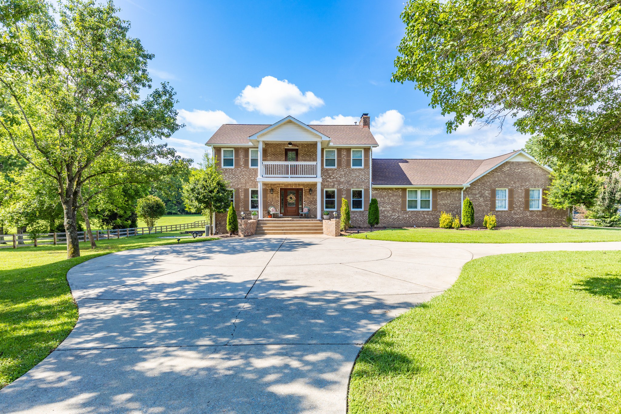 Located within the prestigious Bear Creek Farms community, this Southern Living-inspired estate perfectly combines timeless architectural charm with refined modern comforts. Set on 5.14 private acres, with the opportunity to purchase an additional 5 acres (approved building site and septic for a 5-bedroom home), this property offers exceptional flexibility, ideal for creating a family compound, adding a guest house, or building a barn with an apartment. Encompassing 5,309 square feet, the residence is a rare blend of elegance and serenity. A stately, whitewashed brick exterior welcomes you into a dramatic two-story foyer, where wide-plank hardwood floors and three fireplaces infuse warmth and character throughout. The main-level primary suite offers its own fireplace and a tranquil, retreat-like ambiance, complemented by a fully renovated primary bath completed last year. The sun-filled kitchen is a showpiece in every sense, with floor-to-ceiling windows and professional-grade appliances,....