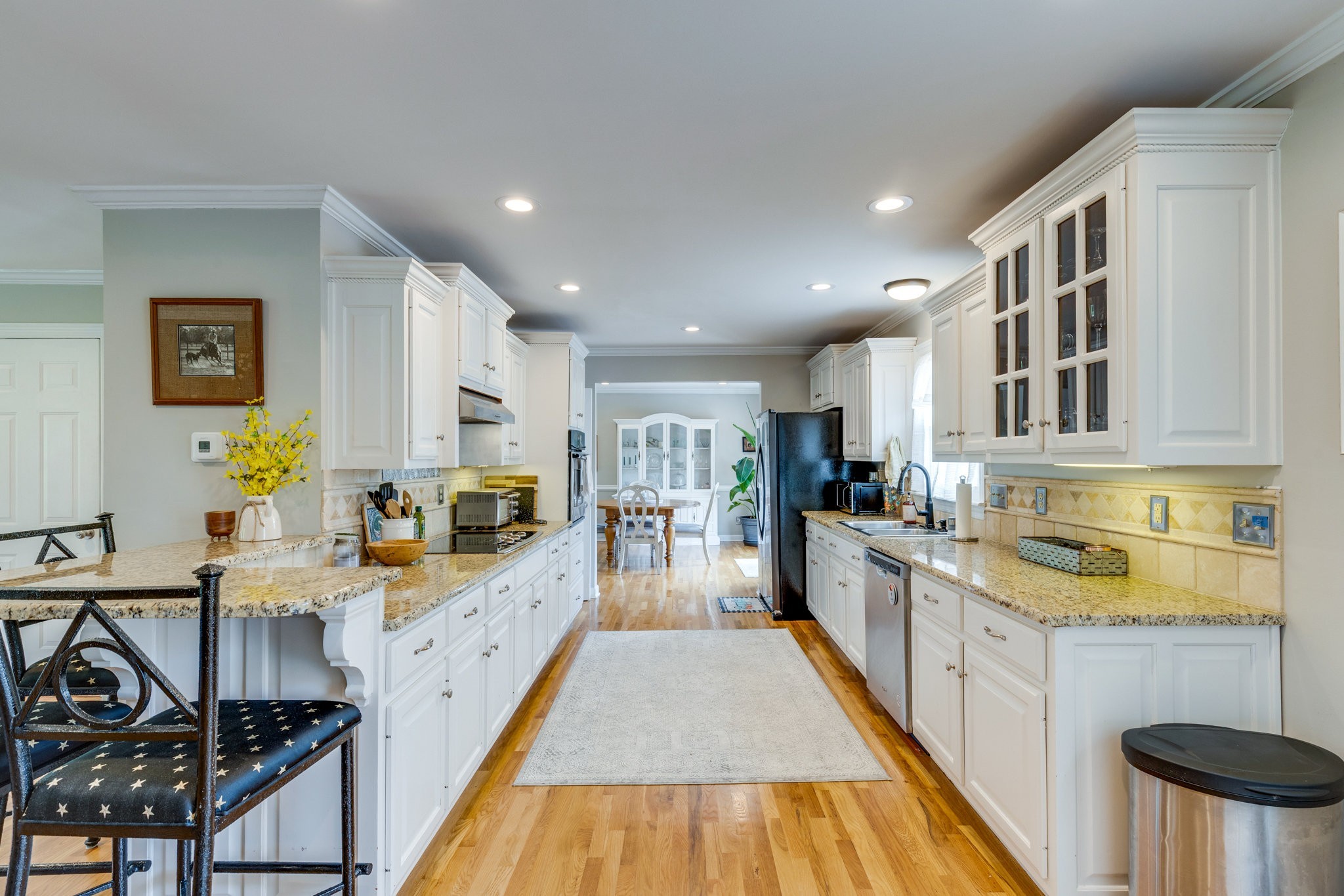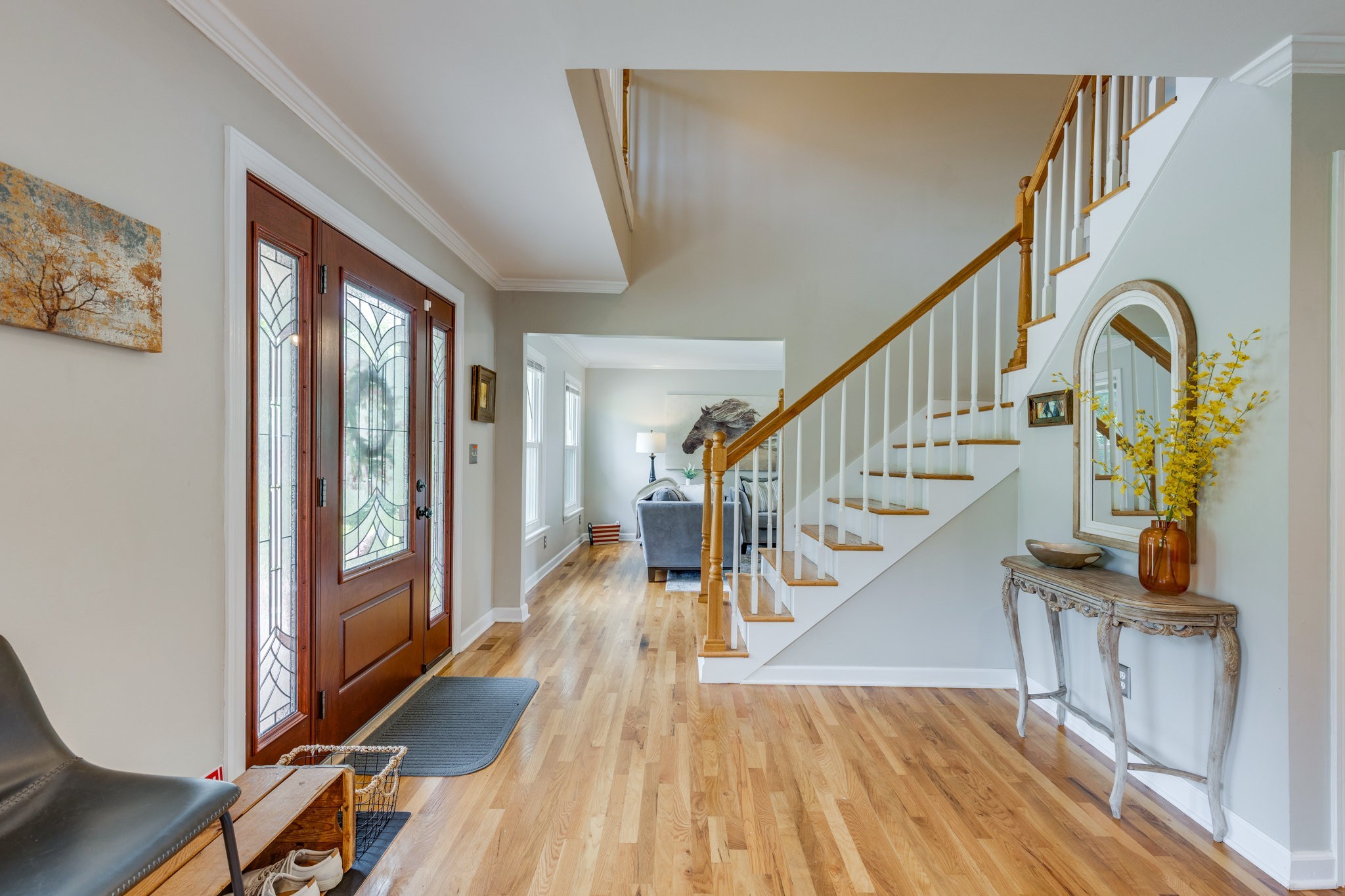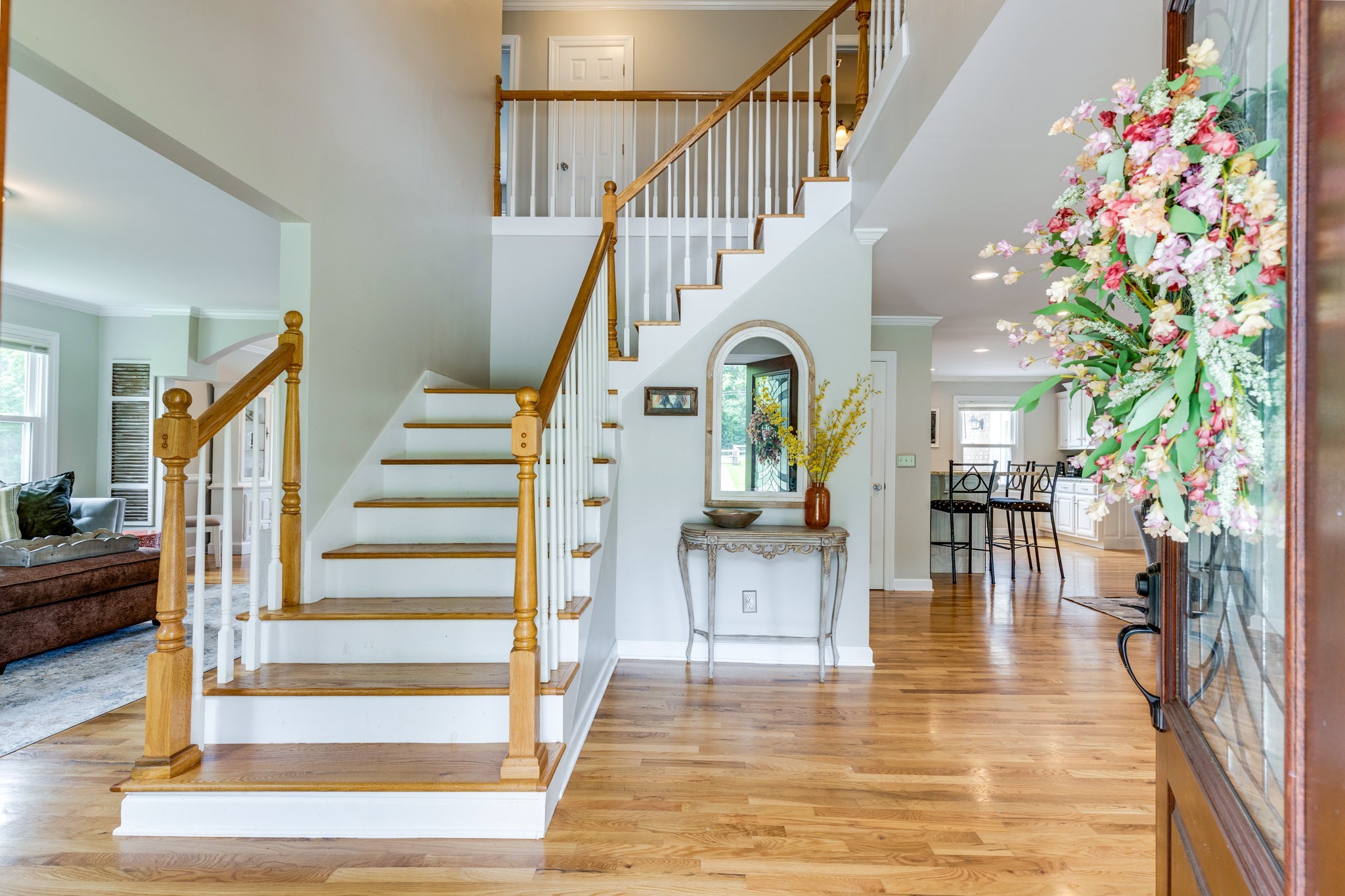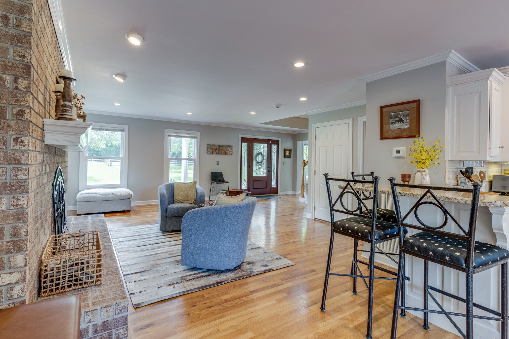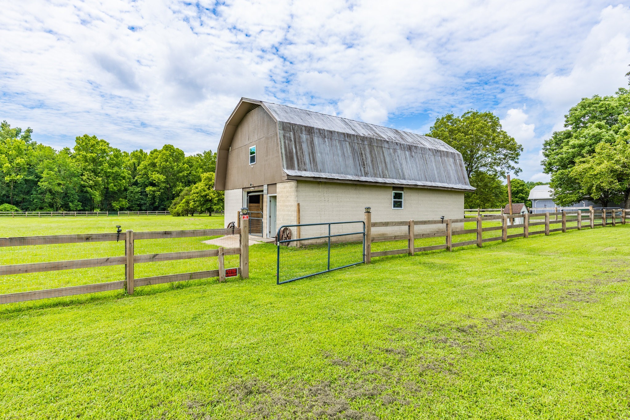 This rare 4-acre estate offers the serenity of a country retreat and the convenience of city living, only minutes from Brentwood and downtown Nashville. This property features a 4486 sq ft stately brick home with 6 BR/4.5 BA that rests on four level acres in a prime location—offering both privacy and convenience. The entire property is fully fenced and privacy gated for your security. At the rear of the property, a peaceful creek, lush paddock, and a beautifully renovated barn create an ideal setting for equestrians or hobbyists. Inside, the main-level primary suite is a true retreat, featuring 551 sq ft, a private sitting room, and a luxurious spa-inspired bath designed for relaxation. The walk-out lower level includes its own private entrance, full kitchen, bath, media room, and a separate garage—perfect for hosting guests, multigenerational living, or a secluded home office. Upstairs, another spacious en suite is complemented by three additional bedrooms and a full bath. The expansive, open-concept layout is anchored by a wonderful kitchen overlooking the scenic back acreage, making it easy to entertain or simply unwind in comfort. A rare 4-car garage (2 side-entry, 2 rear-entry) provides ample room for vehicles or toys, with an attic above offering plentiful storage. Step outside to enjoy your morning coffee on the front porch or upper balcony, host gatherings on the expansive back deck, or explore your own private oasis. Brand-new HVAC units, all new Pella windows, and refined upgrades throughout make this estate move-in ready. Come enjoy the serenity of country living without sacrificing proximity to the city. This extraordinary property has it all.