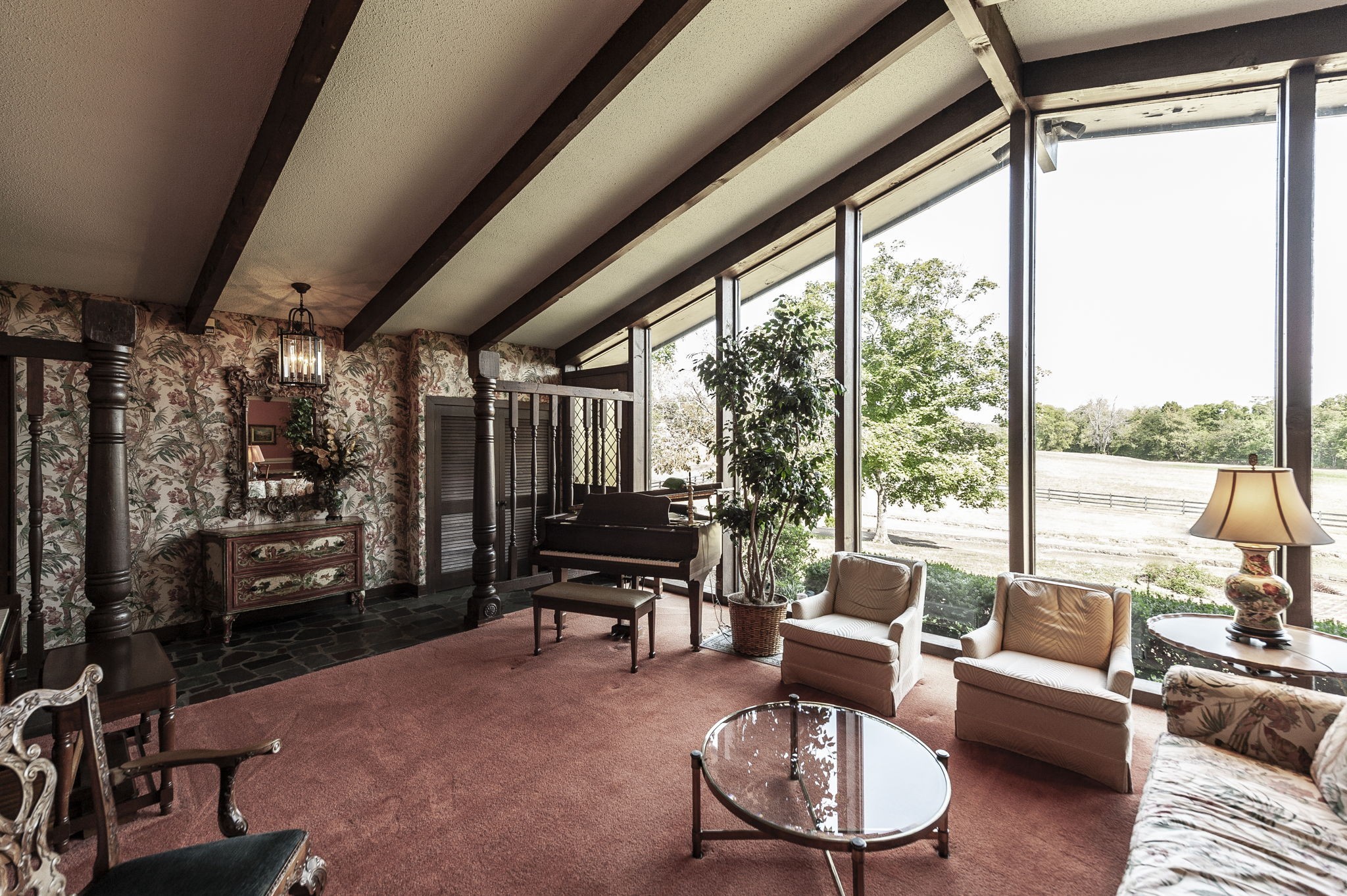 Modern estate retreat in Southwest Williamson County, designed to blend contemporary style with the natural beauty of its surroundings. This unique residence is composed of seven distinct wings, each connected by striking, gallery style hallways. Expansive walls of glass (55 windows in total) frame sweeping views and flood the interiors with natural light, creating a seamless connection between indoors and out. Set on 6.44 level acres in a private, forested clearing, the home offers both tranquility and convenience, just minutes from the Natchez Trace Parkway, Leiper’s Fork, and nearby amenities in Fairview. The thoughtfully planned layout allows for solitude in each wing while still offering a flowing, open design. Outdoors, a newly added saltwater pool (heated) and fenced entertainment area create a resort-like setting for gatherings, relaxation, and enjoying the Tennessee landscape at its best. https://7638youngercreek.unitedcountryleipersforkstories.com