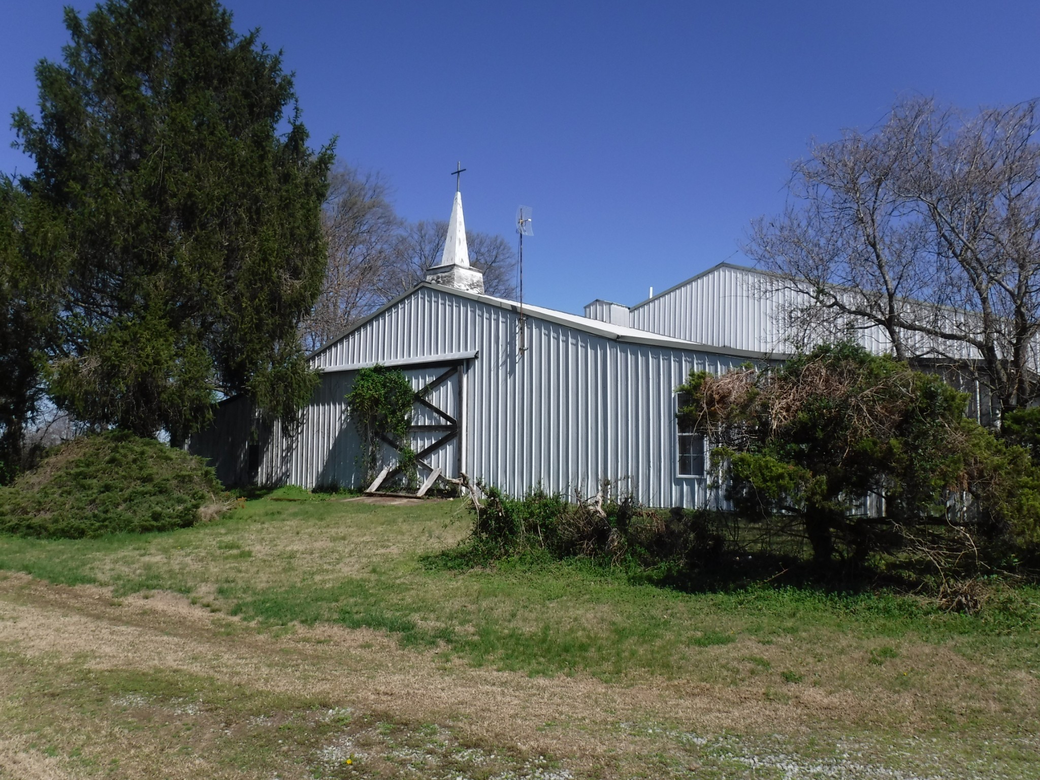 14.5 acres of possible development land with a house and church at rear of property. 555 ft of road frontage on Tiny Town Rd. Currently zoned R-1 with possibilities.